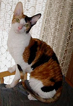Robe: Poil court, dense, frisé en ondulations régulieres sur tout le corps. Crantage souhaité sur les pattes et la queue. Absence de poil de jarre, donnant une grande finesse et une douceur extreme rappelant le satin ou la soie. La croissance du poil est lente. Couleurs: Toutes les couleurs sont reconnues. La variété avec le motif siamois est appelé si-rex. Défauts: Tete trop large, trop longue. Oreilles petites. Corps massif, ramassé. Queue trop épaisse, courte, nue ou hirsute. Grandes zones nues, sauf les tempes et la queue. Poils durs, raides. Remarques: Mariage autorisé avec d'autres races : aucun Caractères / Particularités: C'est un chat vif, remuant, acrobate, tres joueur, voir excentrique. Toujours de bonne humeur, il est sociable avec ses congéneres et les chiens. Il déteste la solitude. Tres affectueux, sensible, il est un tendre compagnon. Sa voix est perçante. Il vit bien en appartement, d'autant plus qu'il est frileux. Les femelles ont es chaleurs fréquentes et une bonne prolificité. Leur appétit est phénoménal et le développement des chatons est rapide. Pour leur entretient, un brossage hebdomadaire convient. Il n'y a pratiquement pas de mue, donc idéal pour les gens qui sont allergiques aux poils. Bibliographie: Encyclopédie du chat, royal canin, 1999. Éditions Hurtubise HMH limitée |